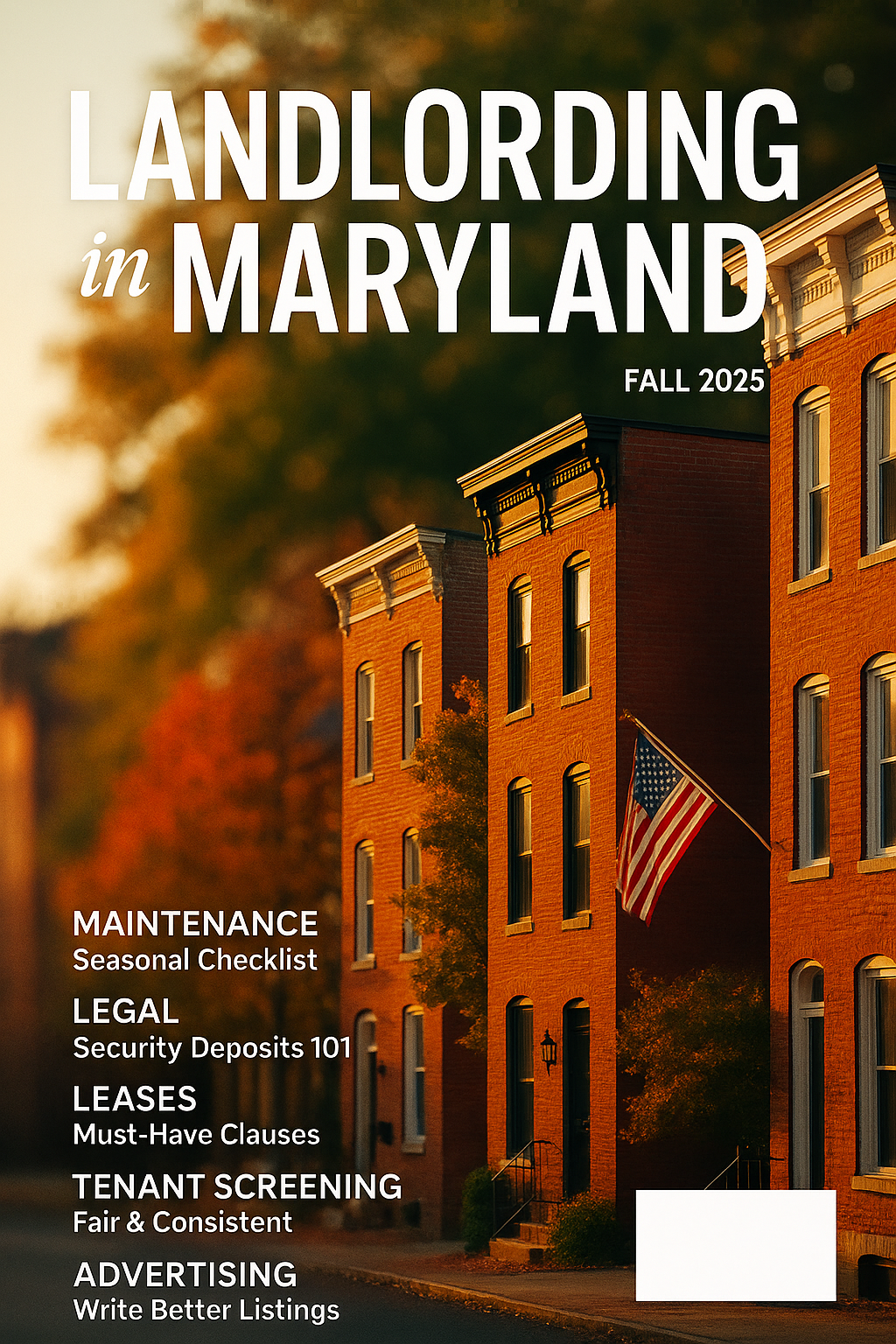 Landlording in Maryland Magazine is a practical, Maryland-first guide for rental owners and property managers who want clear, usable advice—not fluff. Each issue breaks down local landlord-tenant laws. rent court procedures, licensing and inspections, and security-deposit rules, alongside step-by-step checklists for screening, leasing, maintenance, budgeting, and risk management. We pair legal updates with real case studies, vendor tips, and downloadable templates so you can act with confidence the same day. Whether you manage one unit or many, our aim is simple: help you operate compliant, profitable, well-run rentals across the Free State. This guide covers Home in Maryland.